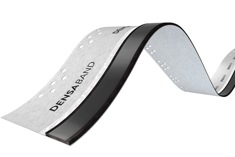 Das im Lieferumfang enthaltene Distanzband schützt den Bereich der Fuge vor Verschmutzungen während der Bauphase.