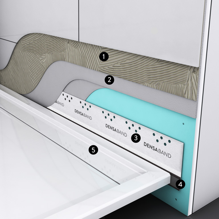 Jedes technische Detail trägt zur dauerhaft funktionalen und hochwertigen Gesamtlösung bei. Neben der gewohnten Einbaufreundlichkeit punktet das DENSABAND SCHALLSCHUTZ besonders durch die Erfüllung der Schallschutznorm DIN 4109 sowie der Abdichtungsnorm DIN 18534-1 – das verschafft Ihnen in Verbindung mit der patentierten, geprüften Produktqualität mehr Sicherheit in Sachen Abdichten in modernen Bädern.