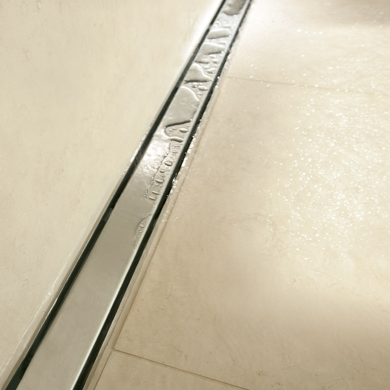Die flache Design-Duschablaufrinne I-DRAIN eignet sich dank ihrer geringen Einbauhöhe hervorragend für den Einbau in neue barrierefreie Duschräume sowie auch bei Duschsanierungen und -umbauten. Die zahlreichen unterschiedlichen Rost-Designs lassen dabei keine Gestaltungswünsche offen.