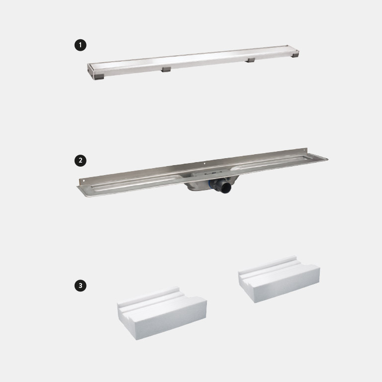 Darüber hinaus vereinfacht der im Lieferumfang enthaltene, zweiteilige Polystyrolblock den Einbau der I-DRAIN Duschablaufrinne zusätzlich.